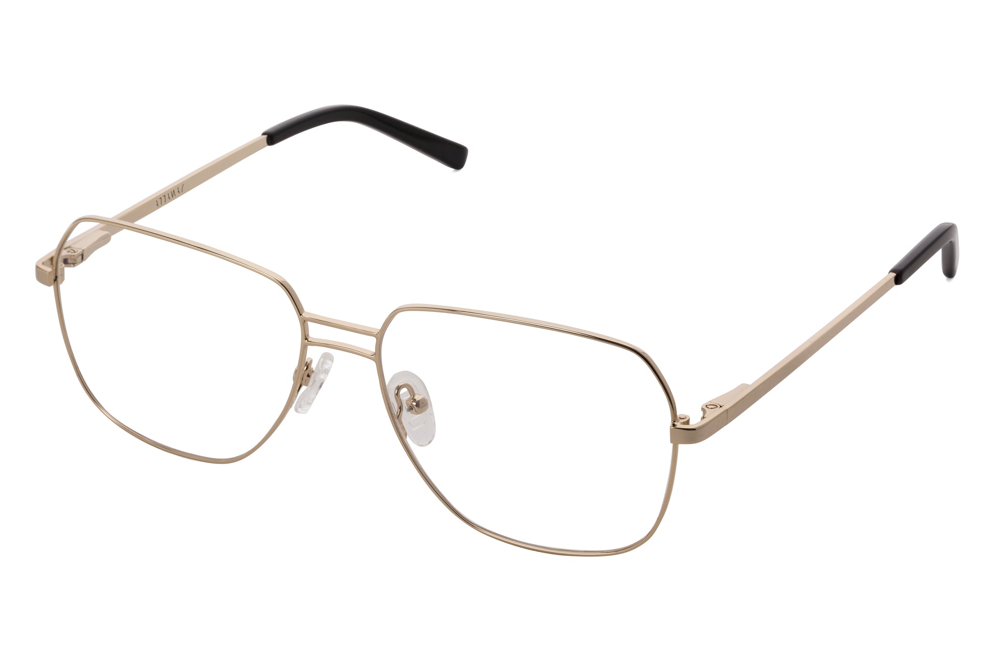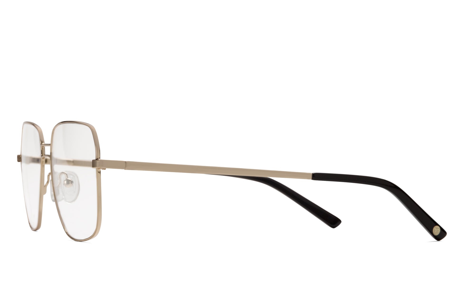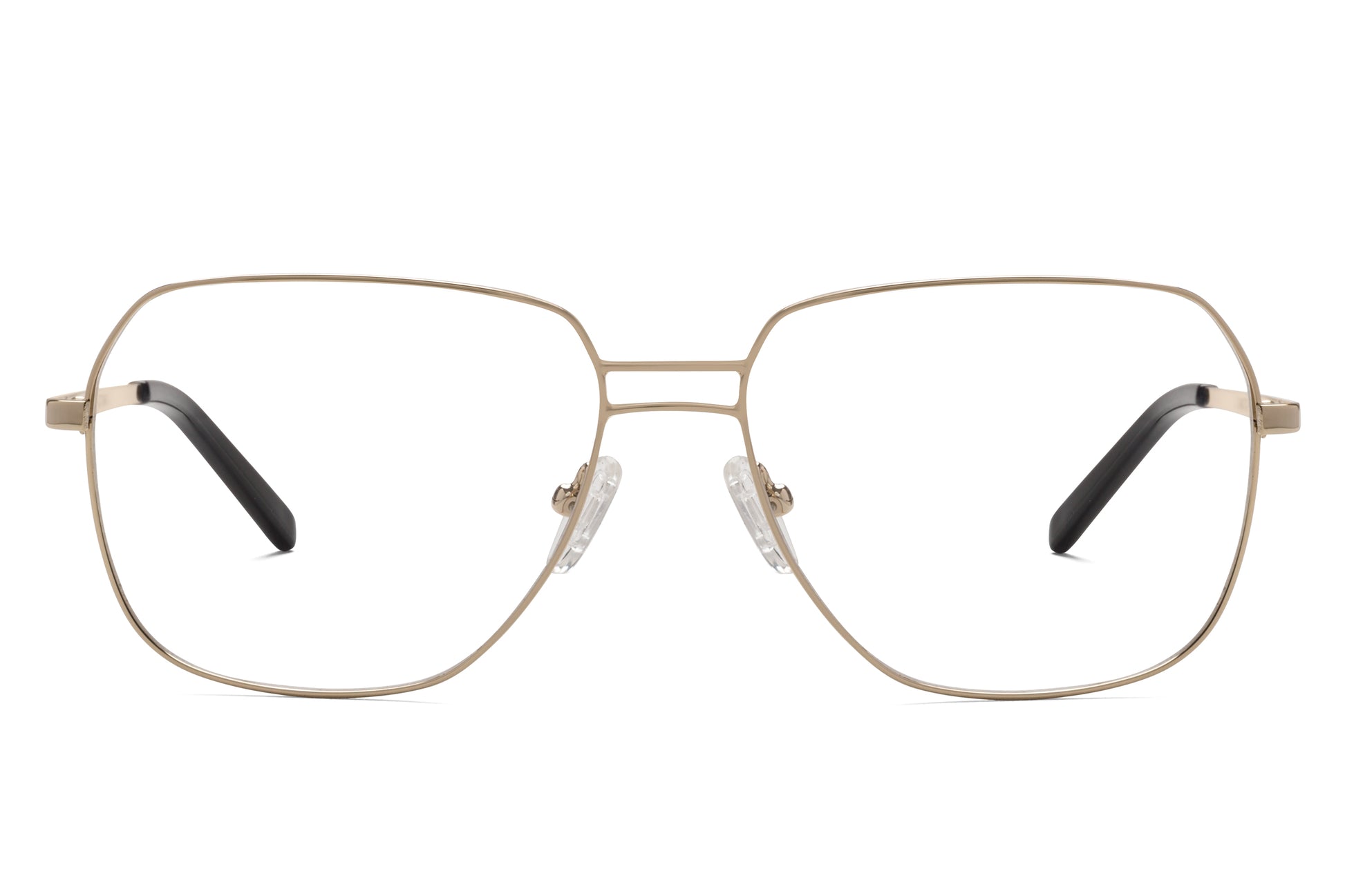La tendencia metálica ha llegado para quedarse. Brass es un diseño de tendencia muy 70s, en acabado oro claro muy brillante. Tiene un doble puente simétrico, y una forma que recuerda a las aviador en su versión más ligera.