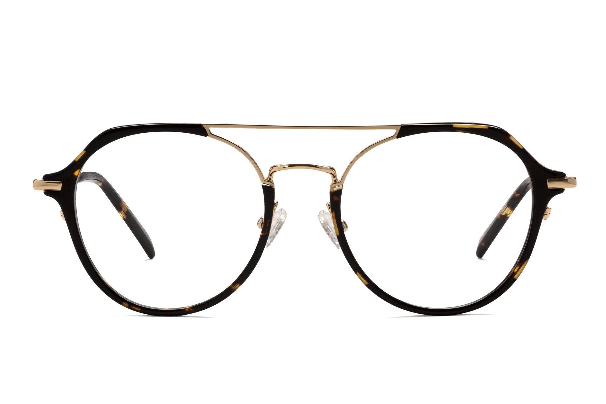 Mezcla de acetato estampado en carey oscuro + metal dorado brillante. Son fáciles de combinar, la forma más sencilla de romper la monotonía con la tendencia bimaterial. Son perfectas si necesitas dar un cambio, alegrando los estilos más sobrios, pero sin excesos.