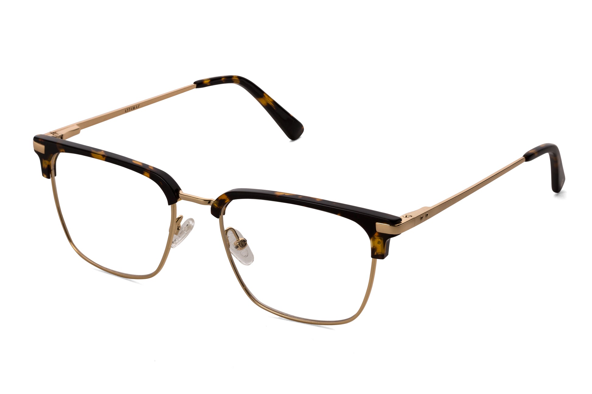El modelo Times es ligero, con un frontal superior en carey y bordeado de un fino marco dorado claro que es la sensación de esta temporada. La varilla fina en oro brillante lo convierte en un modelo clásico y exquisito, que compensa en los looks más Indies y acompaña en los más formales.