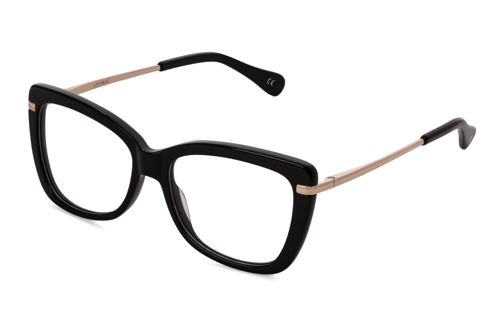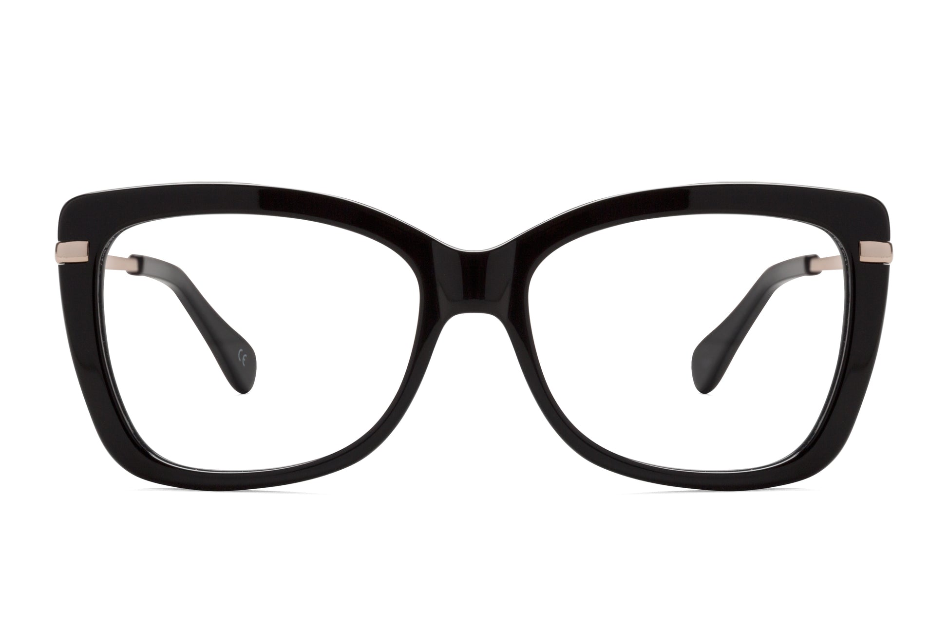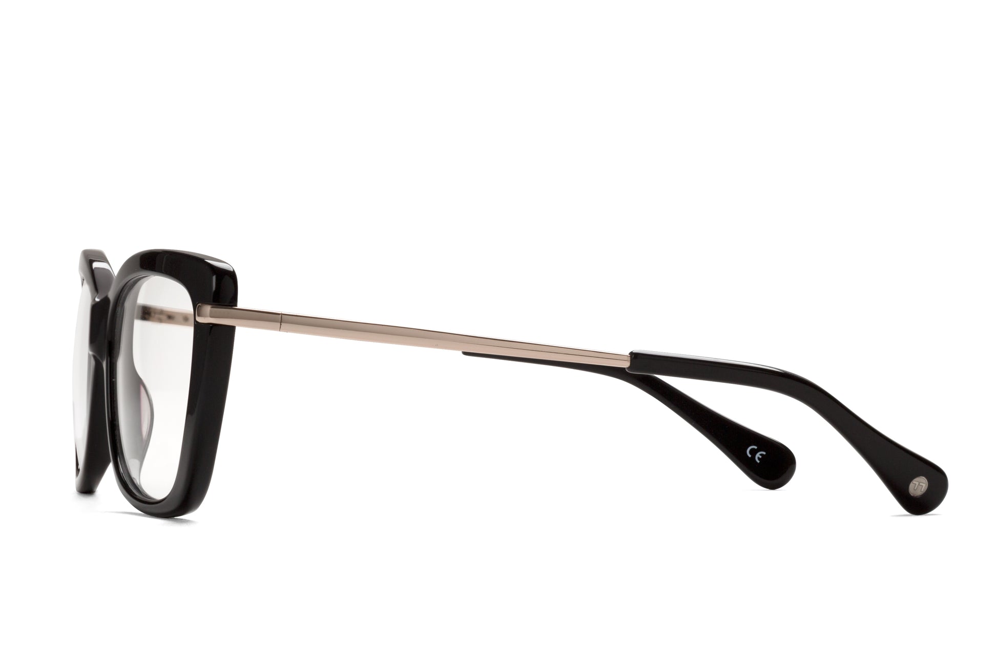 Las Yale son la apuesta con más energía de la colección Pupil. Unas gafas con presencia, en Negro+Oro, con una forma que oscila entre los 60s más yeyés y el añorado Hollywood. Con estructura en acetato, de color negro puro y varillas doradas que asoman en el frontal.